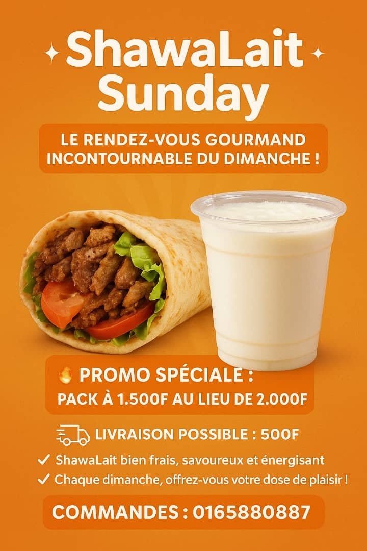 Votre ShawaLait est un Shawama, un humberger ou deux donuts plus un grand pot de yaourt, rien que pour votre plaisir 🌹